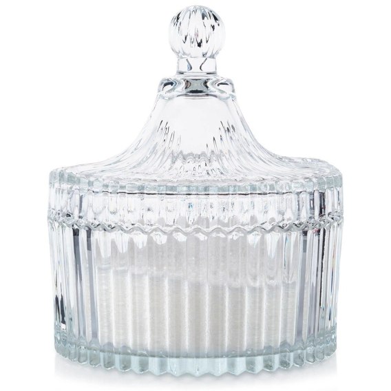 Elegancka cukiernica z pokrywką. Wykorzystamy ją również jako pojemnik do zalewania świec. Cukiernica jest utrzymana w eleganckiej formie, więc idealnie komponuje się z pozostałą zastawą. Pojemnik szklany może pełnić również funkcję dekoracyjną. Postawiony w salonie lub sypialni będzie wyjątkowym elementem dekoracyjnym.