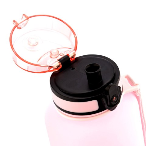 Uniwersalna butelka z matowym wykończeniem i powierzchnią antypoślizgową jest przyjemna w dotyku, a pasek na nadgarstek wygodny podczas codziennego noszenia i ruchu. Bidon został wyposażony w miarkę zachęcającą do regularnego nawadniania. Wyjmowany filtr (np. do owoców, herbaty czy kostek lodu) umożliwia wypełnienie butelki ulubionym napojem, bez obaw o zatkanie ustnika.