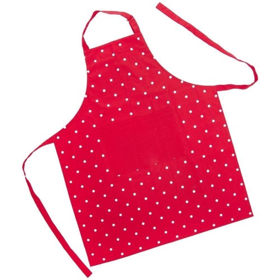 • BAWEŁNIANY - Bawełniany, wiązany fartuch kuchenny w modnym wzorze. Fartuch w czerwonym kolorze w białe kropki. Stylowy fartuch będzie ciekawym elementem ozdobnym odzieży w kuchni.
