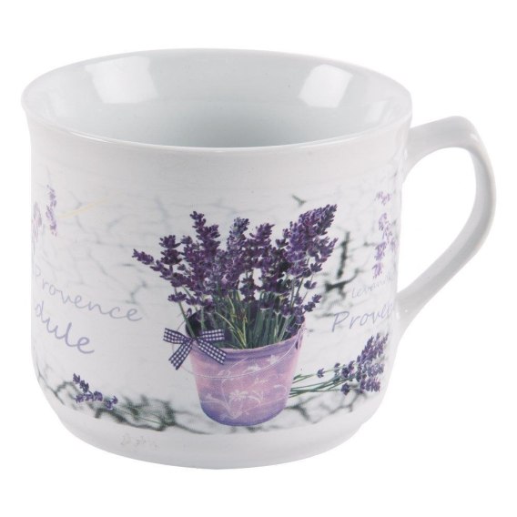 Grupa Orion Sp. z o.o. Kubek Ceramiczny Duży Biały Kwiaty Lawenda do Kawy Herbaty ORION 650 ml