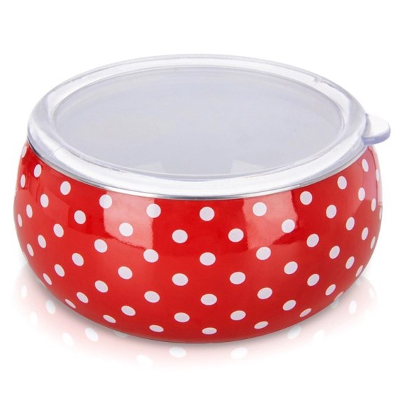 Grupa Orion Sp. z o.o. Miska Emaliowana TECKA 1 L z Pokrywką Czerwony Groszek do Zmywarki ORION