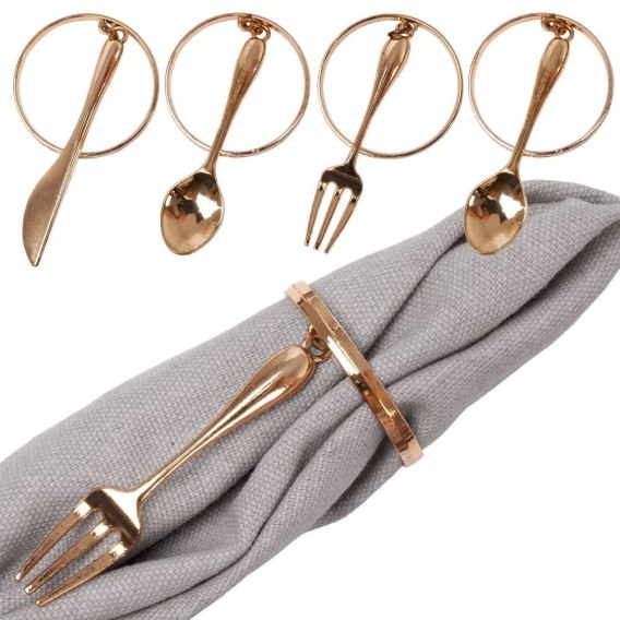 Grupa Orion Sp. z o.o. Obrączki na Serwetki 4 szt. Metalowe Złote Sztućce Solidne Trwałe VILDE