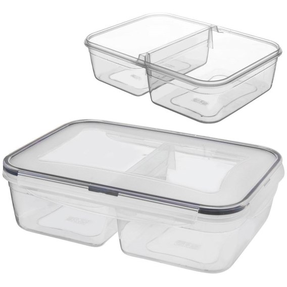 Pojemnik na żywność o pojemności 2 litrów. Pojemnik o wymiarach 25,5 x 18 x 7 cm. Wykonany z najwyższej jakości tworzywa. Świetnie sprawdzi się jako lunch box, dzięki dwóm wydzielonym częściom do przechowywania. Możliwość spiętrzania takich samych pojemników. Niezwykle szczelny dzięki silikonowej uszczelce oraz czterem zatrzaskom. Niezbędny w każdej kuchni. Nadaje się do lodówki, zamrażarki (do -25°C), mikrofalówki (do +95°C). Wykonany z materiałów bezpiecznych dla zdrowia i neutralnych dla żywności - nie posiada BPA. Oryginalny produkt czeskiej marki Orion. Wyprodukowano zgodnie z europejskimi ?? standardami.