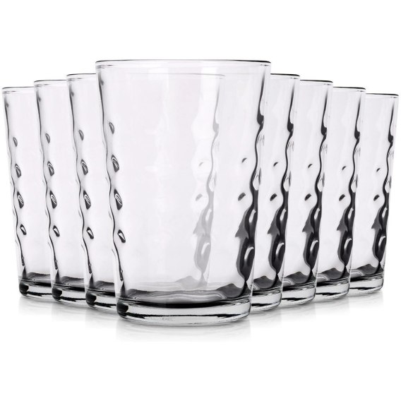 <p>Komplet ośmiu szklanek do serwowania wody i napojów. Wykorzystamy je również do podawania kompotu, soków czy drinków. Niezwykle uniwersalne zastosowanie sprawi, że będą często używane. Łatwe w czyszczeniu i wygodne użytkowaniu. Klasyczny kształt i efektowne zdobienie sprawia, że pięknie prezentują się na stole. Dobrze komponują się z pozostałą zastawą na stole. Wyprodukowano zgodnie z europejskimi standardami.</p>