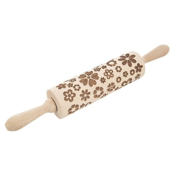 Grupa Orion Sp. z o.o. Wałek Dekoracyjny Drewniany Obrotowy Kwiaty 39 cm ORION do Ciasta