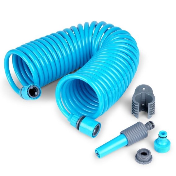 • PRZYDATNY - Wąż ogrodowy rozciągliwy o maksymalnej długości 10 metrów. Wąż ma kształt spirali.