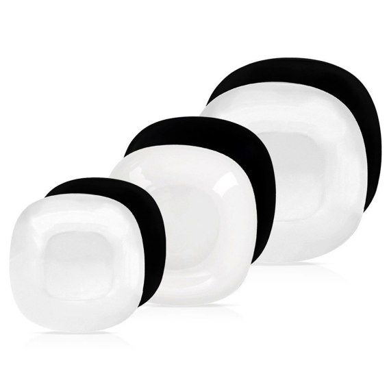 Zestaw obiadowy składający się z 18 elementów. W zestawie: 6x talerzyk deserowy o wymiarach 20,5 x 20,5 x 1,8 cm (3x biały i 3x czarny), 6x talerz obiadowy głęboki o wymiarach 21,5 x 21,5 x 3,7 cm i pojemności 650 ml (3x biały i 3x czarny) oraz 6x talerz obiadowy płytki o wymiarach 26,5 x 26,5 x 2,4 cm (3x biały i 3x czarny). Zestaw jest niezwykle praktyczny. Przydatny w każdym domu podczas codziennych spotkań, jak i wyjątkowych okazji. Łatwy w czyszczeniu i wygodny w użytkowaniu. Każde z naczyń możemy użytkować osobno. Talerz głęboki będzie idealny na zupy, owsianki, płatki śniadaniowe oraz dania jednogarnkowe. Talerz obiadowy sprawdzi się do serwowania drugiego dania oraz przystawek. Talerzyk deserowy jest idealny do podawania wszelkiego rodzaju deserów - ciast, ciasteczek, babeczek, a także innych przekąsek lub dań.