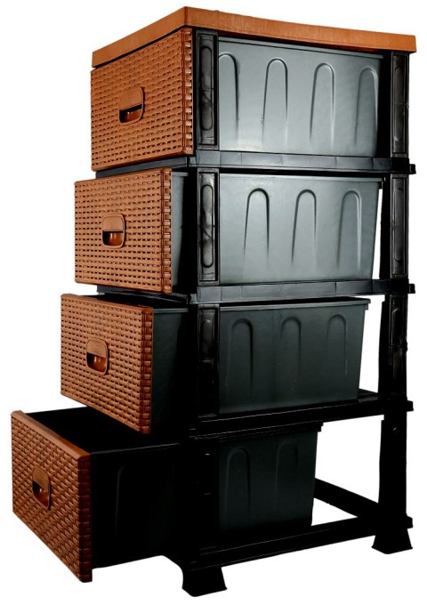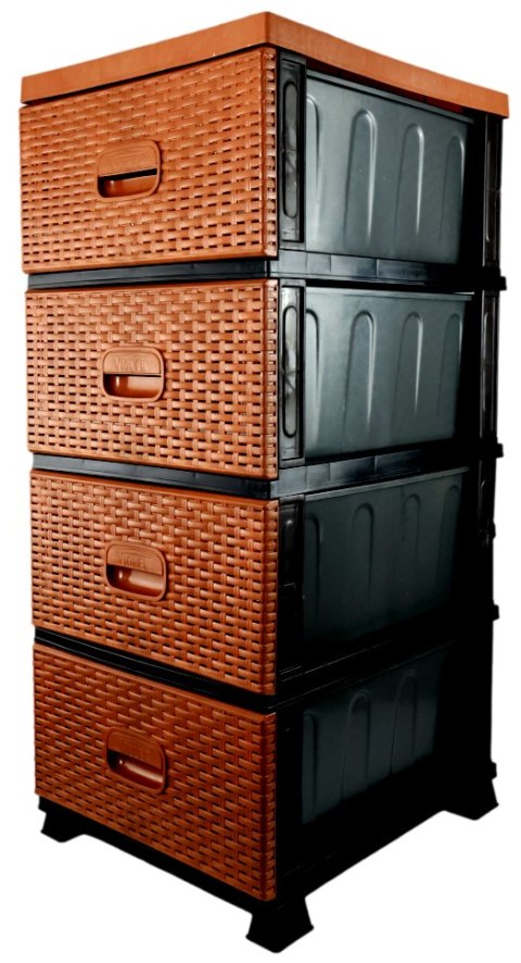 Regał łazienkowy - komoda z szufladami to doskonałe rozwiązanie dla tych, którzy pragną połączyć niezawodność organizacji z estetyką wnętrza. Wykonany z wysokiej jakości tworzywa sztucznego, które imituje ręcznie pleciony rattan, mebel nie tylko ułatwia utrzymanie porządku, ale także wprowadza subtelny urok do Twojego wnętrza.