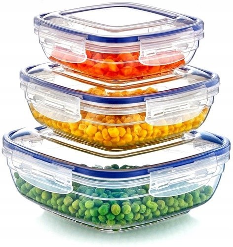 Kpl pojemników do żywności kwadrat 600,1025,1700 ml transparent
