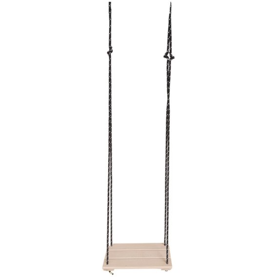 Stalowe pierścienie pozawalają na regulacje wymaganej długości lin. Dzięki naturalnym materiałom i prostemu designowi świetnie komponuje się z otoczeniem, oferując dzieciom godziny radosnej zabawy.