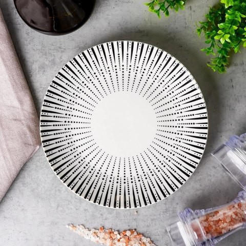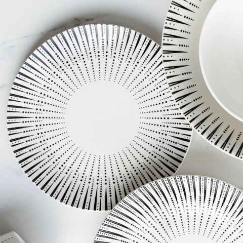 <li><strong>EFEKTOWNY</strong> - Utrzymany w modnej biało-czarnej kolorystyce. Talerz posiada efektowny wzór i pięknie prezentuje się na stole wraz z inną zastawą.</li>