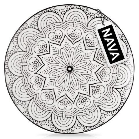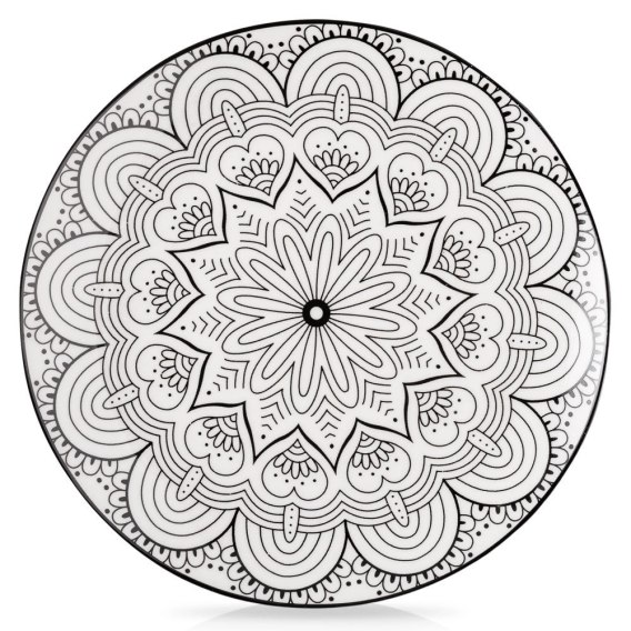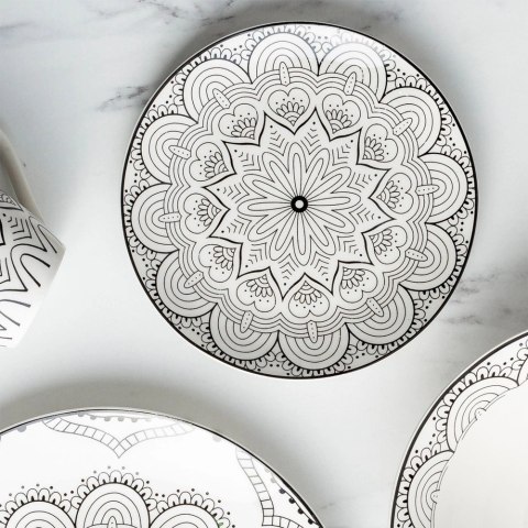 <li><strong>PORCELANOWY</strong> - Wykonany z wysokiej jakości porcelany w białym kolorze. Posiada piękny, nowoczesny dekor z motywem mandali w kolorze czarnym.</li>