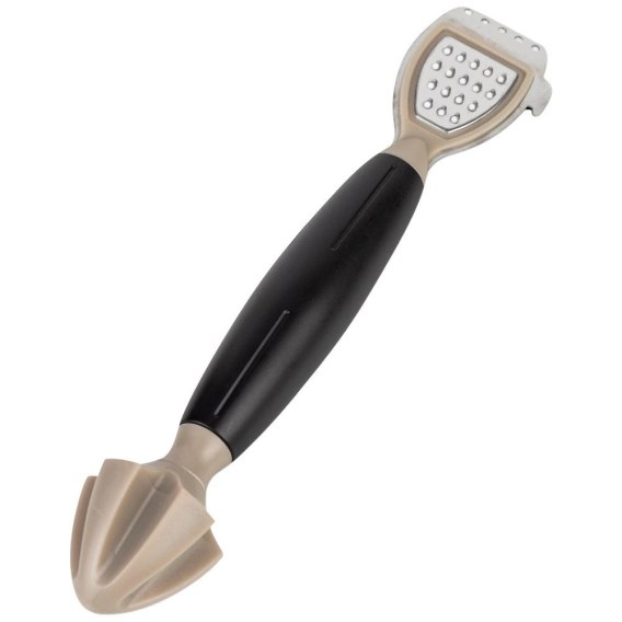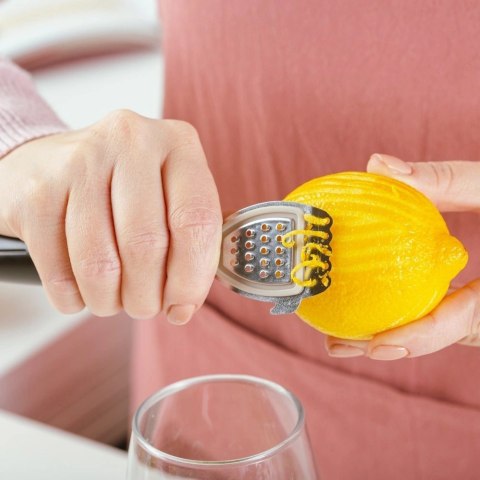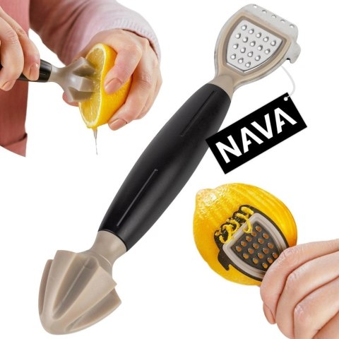 <p>Wielofunkcyjny wyciskacz do cytrusów. Z jego pomocą w łatwy sposób wyciśniemy świeżutki sok z cytryny, limonki i innych cytrusów. Umożliwia także tarcie skórki z cytryny bądź innego owocu na wiórki lub paski, co pozwoli nam na wygodne aromatyzowanie lub udekorowanie potraw. Dodatkową zaletą wyciskacza jest nacięcie do usuwania pestek, które umożliwia również otwieranie butelek z napojami gazowanymi czy innymi napojami. Wyciskacz ma niewielkie rozmiary, dzięki czemu korzystanie z niego jest bardzo wygodne. <strong>Oryginalny produkt greckiej marki NAVA z linii akcesoriów kuchennych Misty. </strong>Wyprodukowano zgodnie z europejskimi standardami.</p>