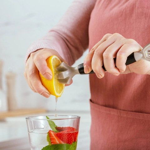 <li><strong>ŁATWY W UŻYTKOWANIU</strong> - Wyciskacz jest bardzo łatwy w obsłudze. Wystarczy przekręcić kilka razy cytrynę lub limonkę, aby uzyskać pyszny i świeży sok. Niezwykle łatwy w utrzymaniu czystości, nadaje się do mycia w zmywarce do naczyń.</li>