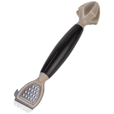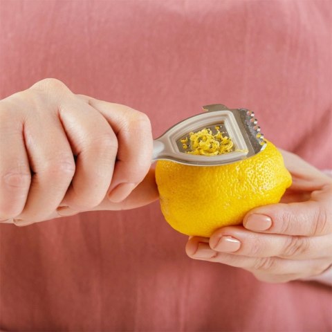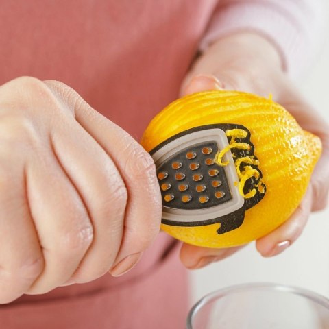 <li><strong>WIELOFUNKCYJNY</strong> - Wyciskacz wyposażony jest w skrobak oraz tarkę do skórek owoców. Umożliwia przygotowanie cienkich pasków lub wiórków ze skórki, które można dodać do potraw lub użyć jako dekoracji. Dodatkowo, wyciskacz z boku posiada końcówkę do łatwego usuwania pestek, którą można wykorzystać również jako otwieracz do butelek.</li>