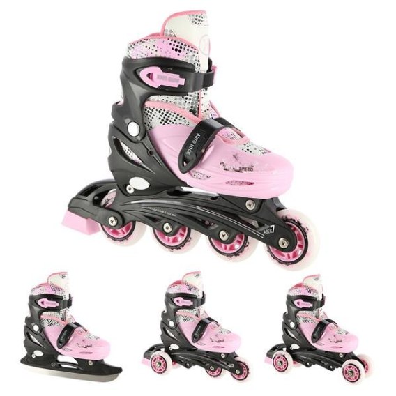 NH18331 Set Nils Extreme to łyżworolki przeznaczone dla pasjonatów jazdy. Produkt oferuje 4 możliwości konfiguracji. Są to: łyżwy, łyżworolki, wrotki oraz rolko-wrotki.