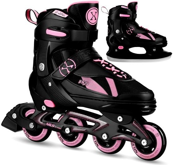 NH382 ŁYŻWOROLKI 2W1 ENZO RÓŻOWE ROZM. L(40-43) Z WYM. PŁOZĄ HOKEJOWĄ NILS EXTREME