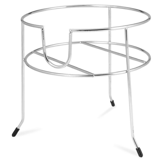 Przydatny stojak pod słój z kranikiem. Pasuje do większości słoików na wodę o pojemności 3-5 litrów. Niezwykle solidny, wykonany z metalu w kolorze srebrnym. Z jego pomocą nalewanie napojów ze słoika z kranikiem jest wyjątkowo wygodne. Dzięki zabezpieczeniu nóżek gumowymi osłonkami, nie porysuje powierzchni na której stoi. Stojak jest łatwy w czyszczeniu - do czyszczenia powierzchni chromowanej należy użyć płynu do naczyń, gąbki i ściereczki. Nie wolno używać żrących płynów i metalowych gąbek. Stojak ma średnicę 19 cm oraz wysokość 19 cm, średnica wewnętrzna to 18 cm. Wyprodukowano zgodnie z europejskimi standardami.