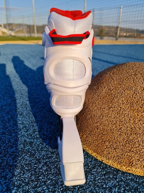 Dla bezpieczeństwa jedna łyżworolka jest wyposażona w hamulec.