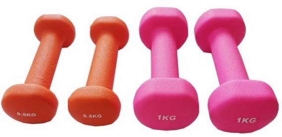 Zestaw 2 sztuk hantli o obciążeniu 0,5 kg. Wysoka jakość wykonania zapewnia trwałość hantli. Do ich produkcji użyto materiału żeliwnego, który został pokryty neoprenem, dzięki czemu nie ślizgają się w dłoniach. Hantle mają sześciokątny kształt, co zapobiega ewentualnemu toczeniu się po podłożu, ułatwiając przechowywanie. Można ich używać na wiele sposobów. Są wykorzystywane m. in. do treningów fitness czy pilates. Sprawdzą się zarówno w grupach, na siłowniach jak i w zaciszu domowym. Można również wykorzystać je podczas joggingu aby wzmocnić trening. Dostępne również w wariancie 2 x 1 kg.