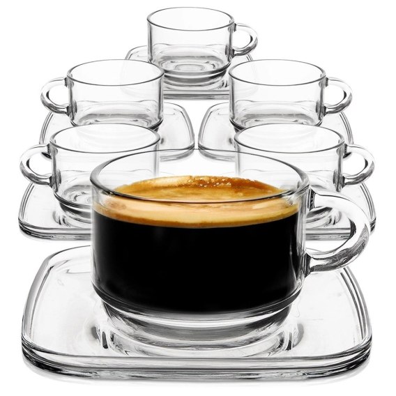 Zestaw sześciu filiżanek ze spodkiem przeznaczonych do picia kawy, herbaty, napojów. Odpowiedni rozmiar filiżanek sprawia, że napoje prezentują się w nich pięknie, a spodek dodaje im stylu. Dobrze komponują się z pozostałą zastawą na stole. Wyprodukowany zgodnie z europejskimi standardami.