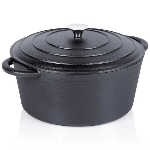 Garnek żeliwny z pokrywką przydatny w każdym domu. Idealny do gotowania, pieczenia, duszenia oraz smażenia potraw. Potrawy przygotowane w garnku będą soczyste i aromatyczne. Możemy użytkować ją w każdej kuchence, ale również bezpośrednio na grillu, czy ogniu. Żeliwo rozgrzewa się równomiernie i długo utrzymuje ciepło, dzięki czemu serwowane dania dłużej będą ciepłe. UWAGA! Po każdym użyciu umyć, wytrzeć suchą szmatką do sucha i natłuścić - w przeciwnym razie na naczyniu pojawi się rdza. Naczynie nie posiada żadnych powłok typu "teflon".