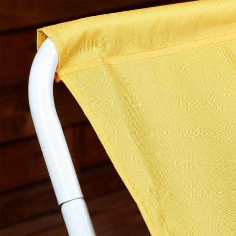 ⭐ Metalowa konstrukcja w kolorze białym - Konstrukcja leżaka jest lekka a jednocześnie wytrzymała, wykonana z metalu w kolorze białym. Siedzisko wykonane z odpornej tkaniny poliestrowej w żółtych odcieniach.