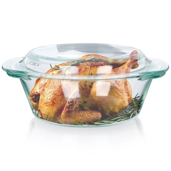 Żaroodporne naczynie z pokrywką do zapiekania i pieczenia. Wygodne w użytkowaniu, dzięki praktycznym uchwytom. Forma jest idealna do przygotowania zapiekanych dań, a także możemy serwować w niej bezpośrednio potrawy. Powierzchnia naczynia jest gładka, co pozwoli na łatwe utrzymanie go w czystości. Podczas używania przestrzegać zasady powolnego ogrzewania i chłodzenia, nie dodawać zimnej ani gorącej wody. Nie umieszczać naczynia na bezpośrednim źródle ciepła.