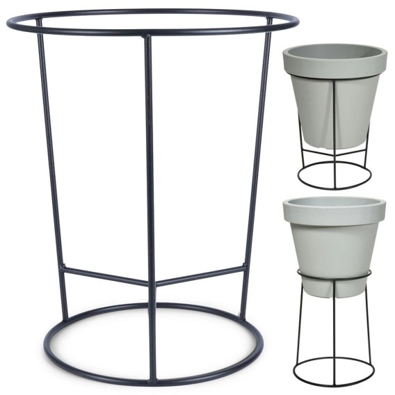 Stojak możemy użytkować dwustronnie. Z jednej strony stojak posiada średnicę 45 cm, która będzie odpowiednia do doniczek o maksymalnej średnicy 43 cm i pozwoli na postawienie na nim doniczki. Druga strona stojaka posiada średnicę 36 cm i będzie odpowiednia do doniczek o średnicy 34 cm, wersja ta pozwoli na osadzenie doniczki w stojaku. Stojak jest odpowiedni zatem do dwóch wielkości doniczek, w zależności od tego, której strony użyjesz.