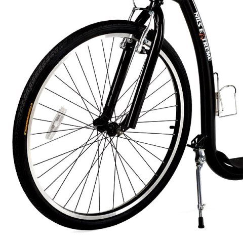 To hulajnoga przeznaczona dla młodzieży oraz dorosłych. Jej bardzo duże pompowane koła sprawiają, że nie trudno pomylić ją z rowerem. Dzięki temu, że średnica kół jest okazała, przednie to aż 26",jednym odepchnięciem pokonamy spory kawałek. Dodatkowo manewrowanie hulajnogą jest bardzo proste.