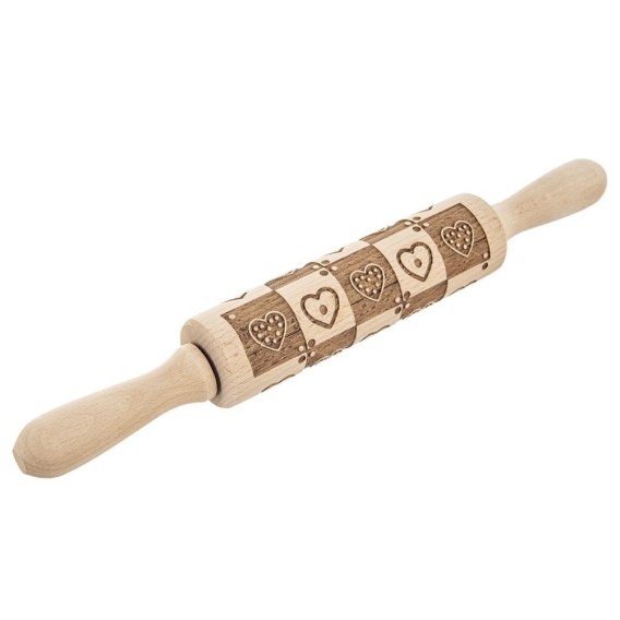 - DEKORACYJNY - Wałek posiada dekor w postaci serc, dzięki czemu na cieście uzyskamy piękny wzór. Z jego pomocą uzyskamy fantazyjne zdobienia.